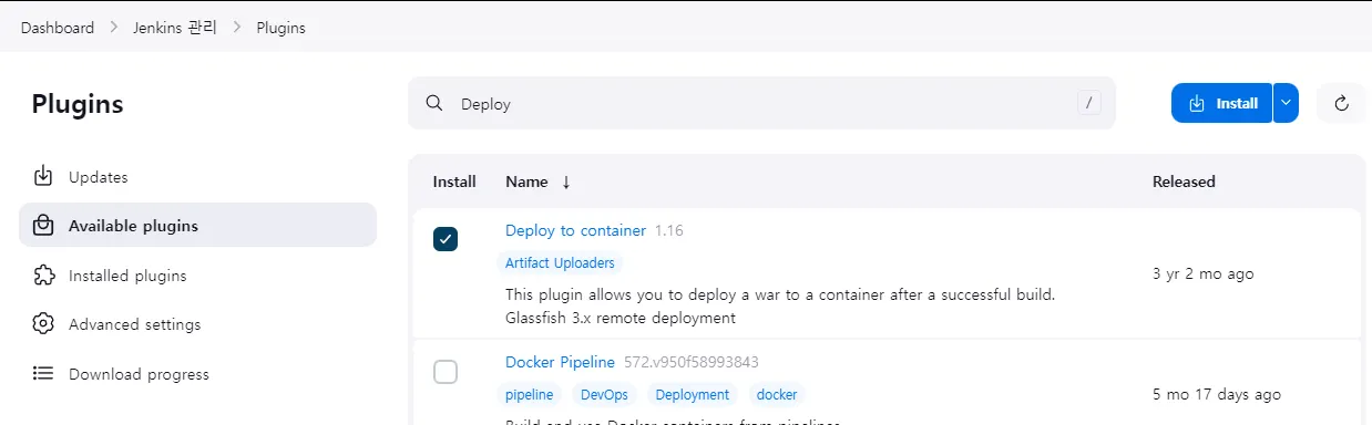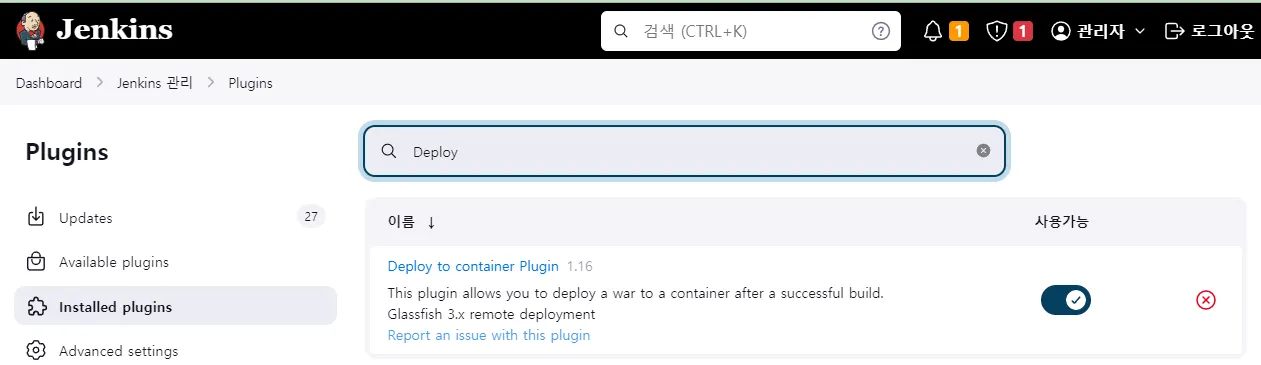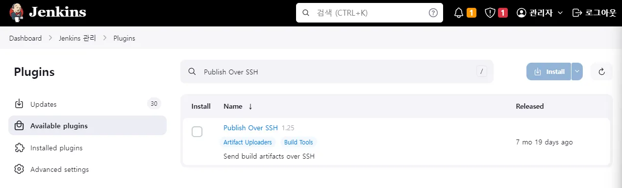 젠킨스 서버에서 원격으로 배포하기 위하여 사용하는 플러그인