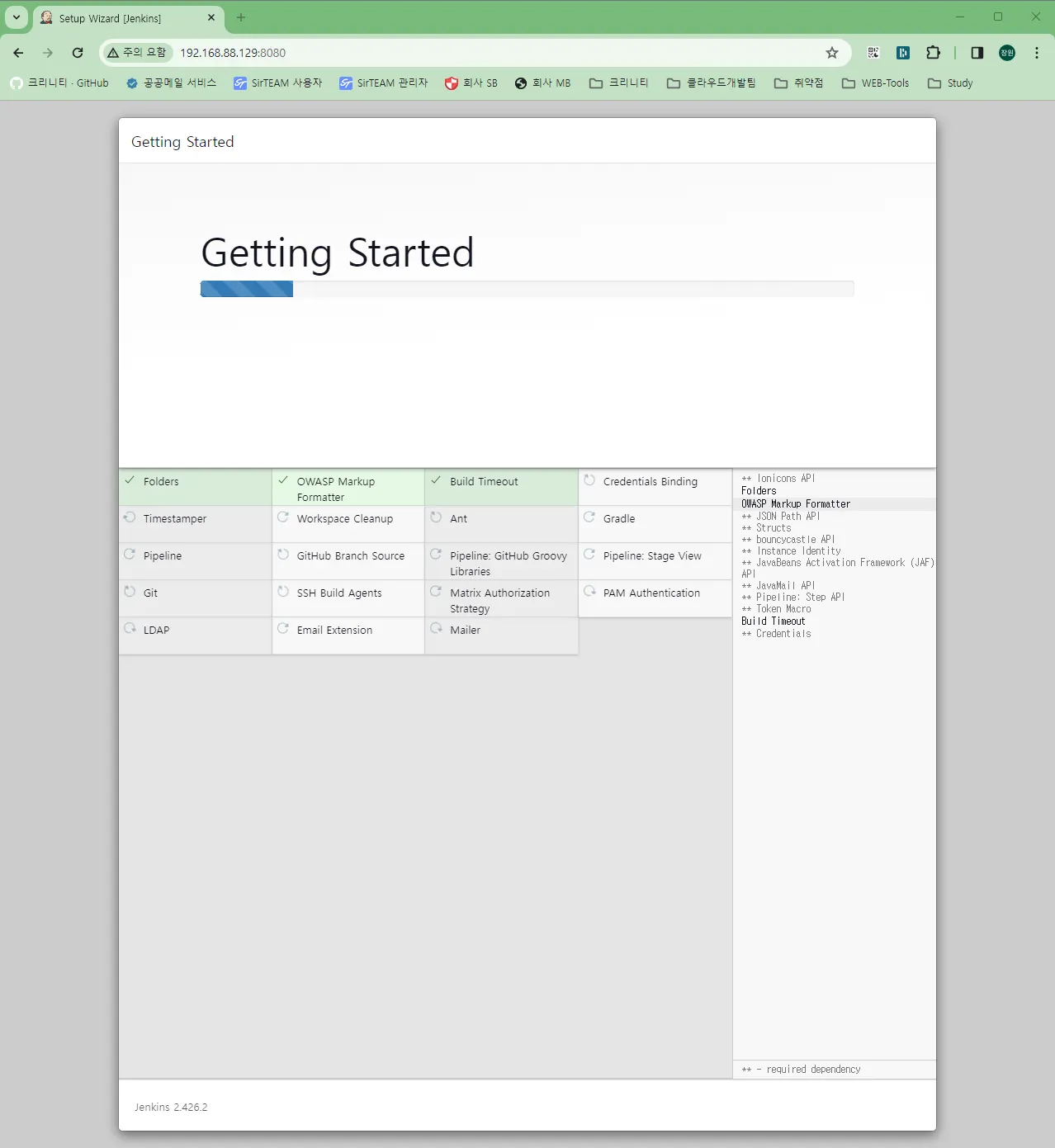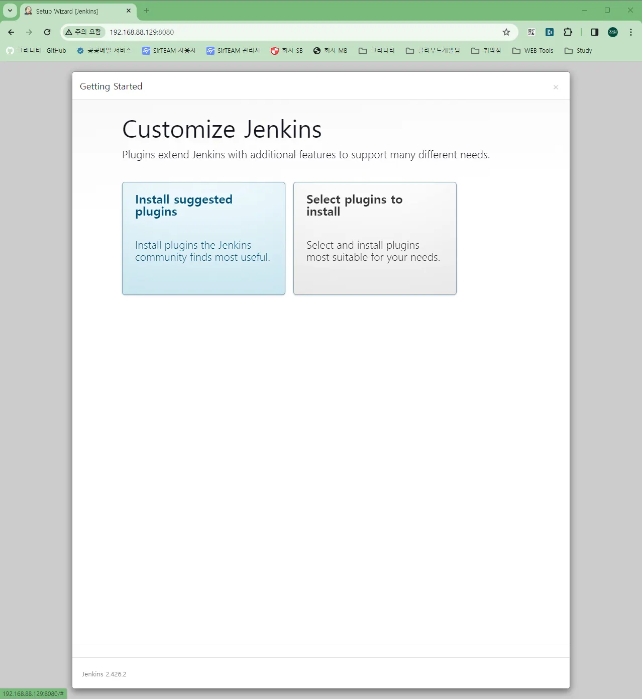 저는 Jenkins에서 제안하는 기본 플러그인만 설치하겠습니다.