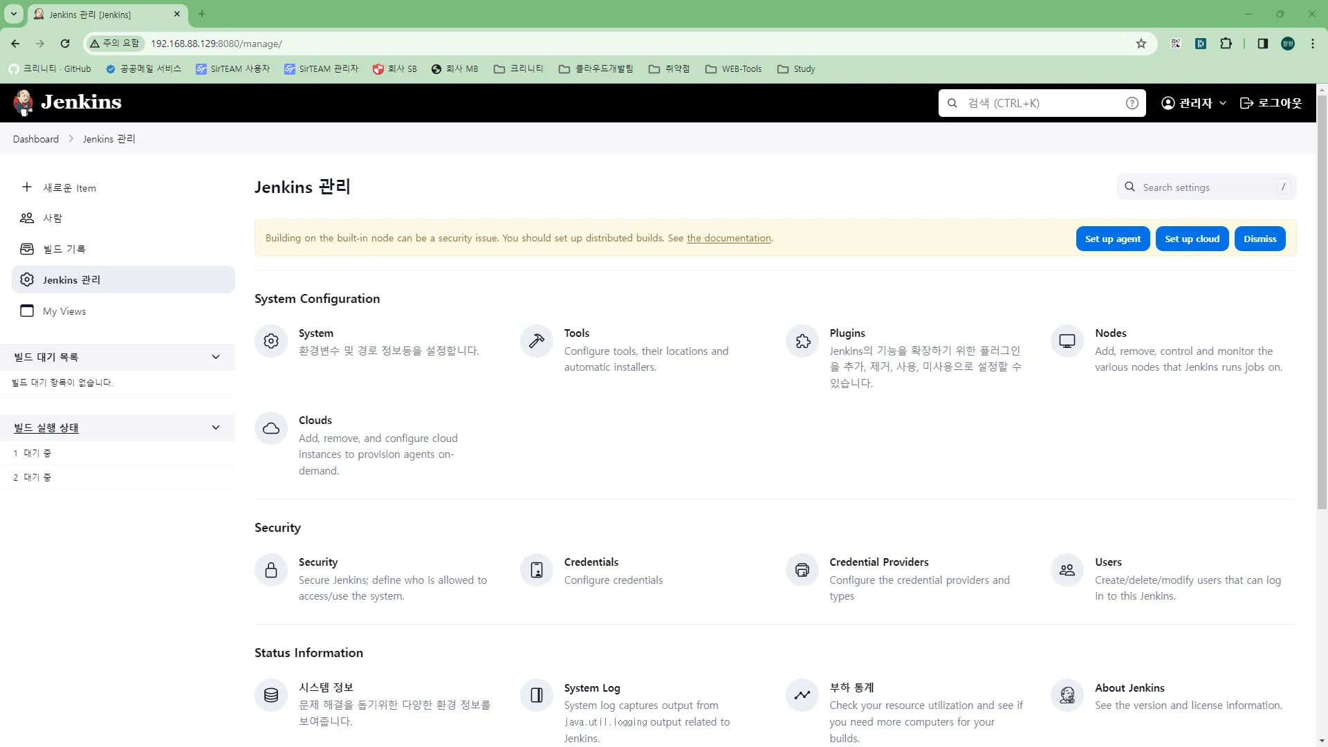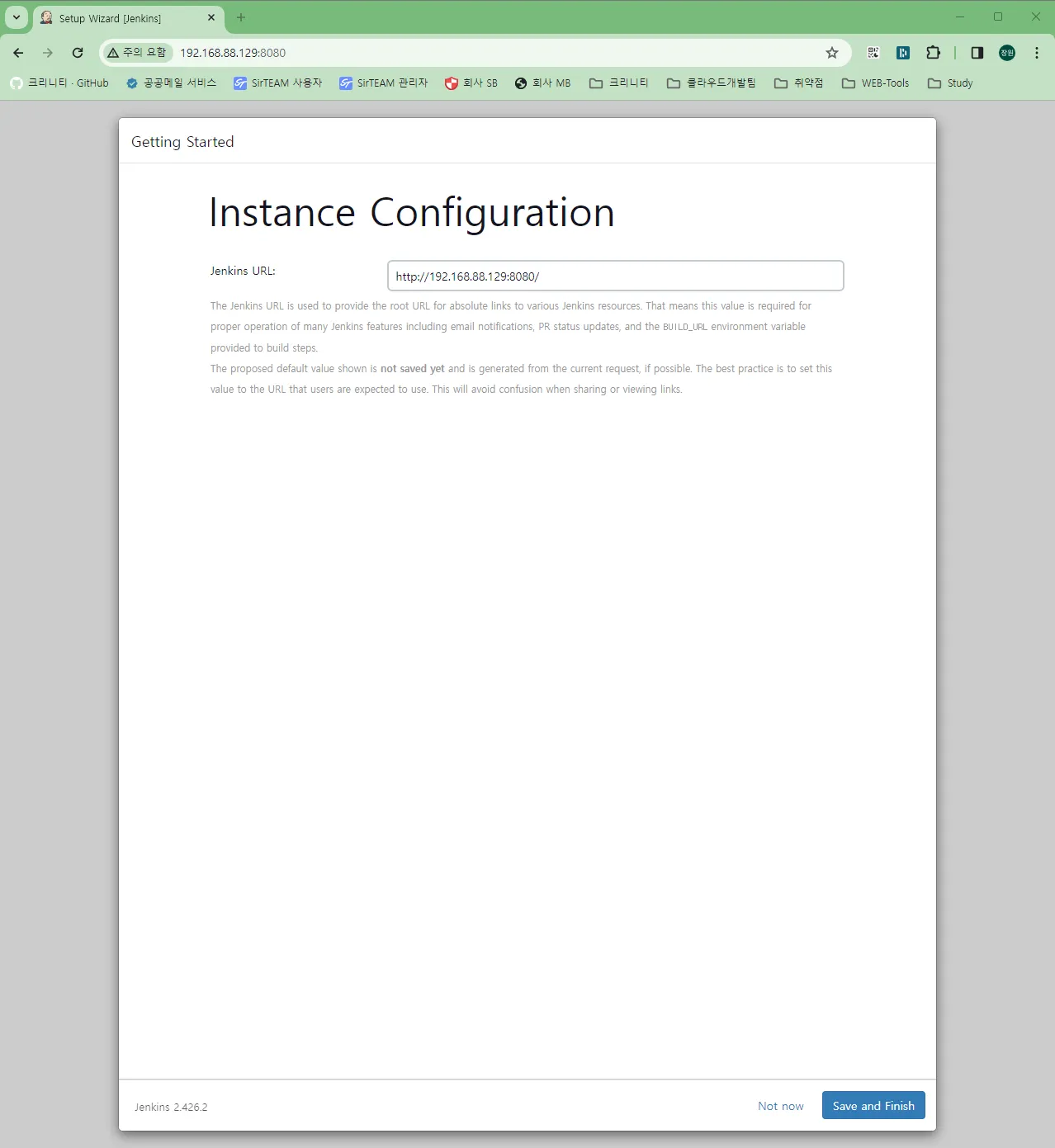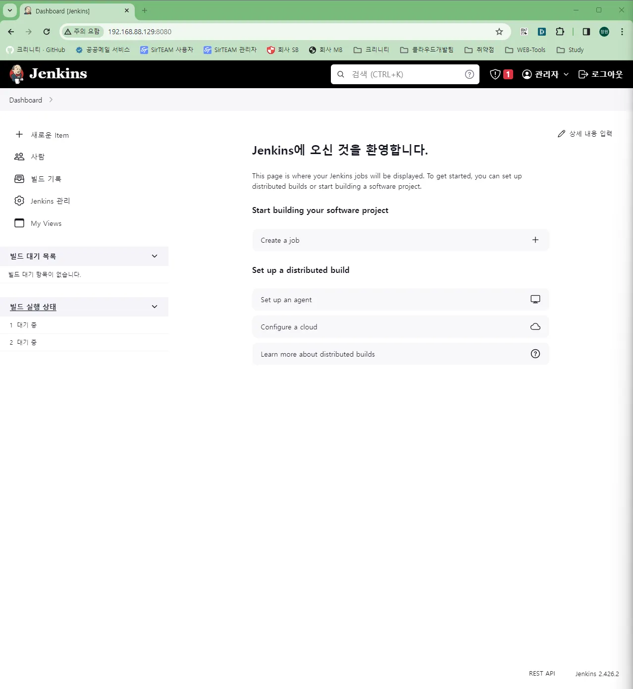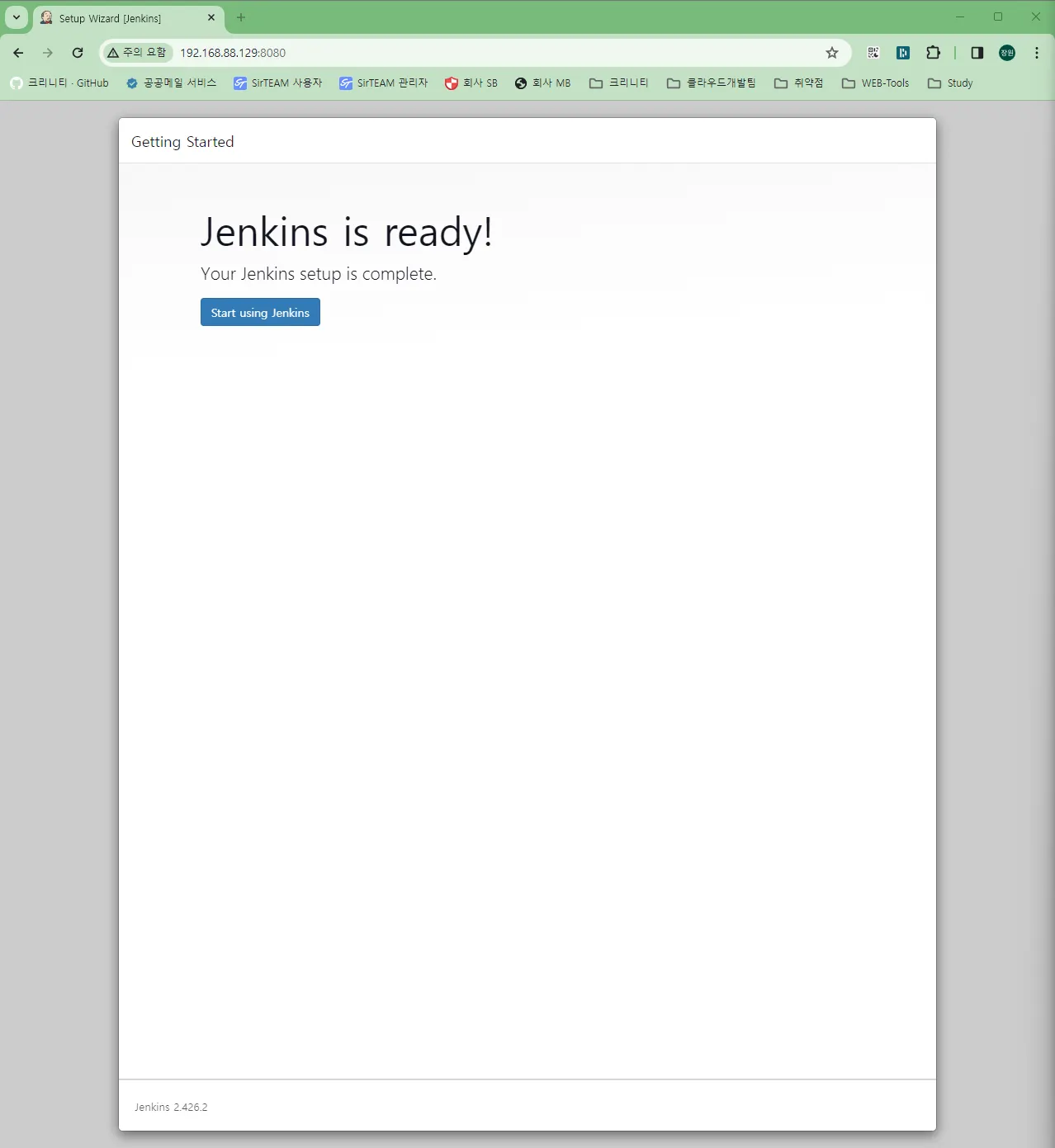 VM 환경인 경우, Jenkins 설치 VM의 사설 IP로 접속합니다.
