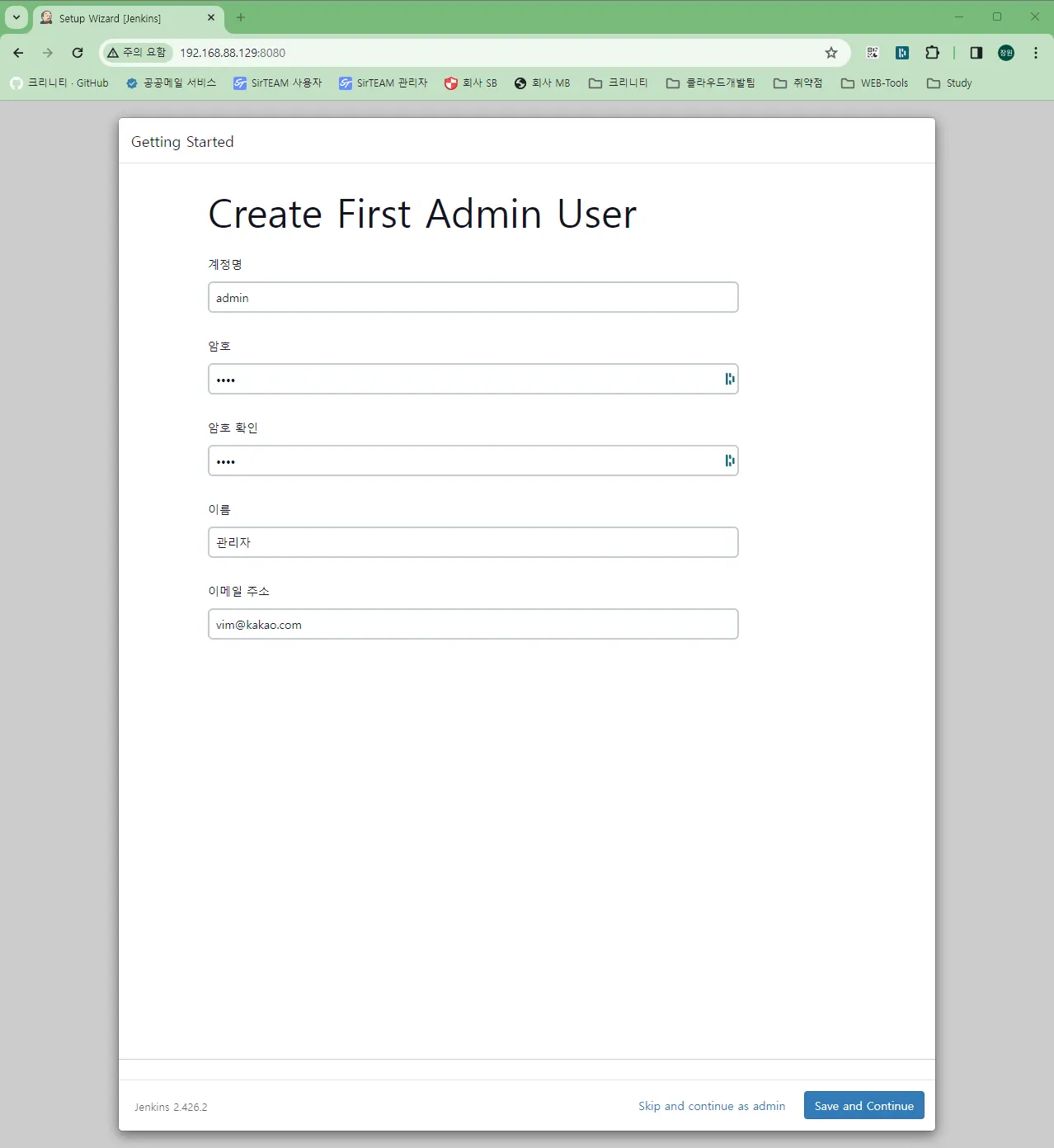 설치가 완료되면 아래와 같이 관리자 계정 설정을 진행합니다.