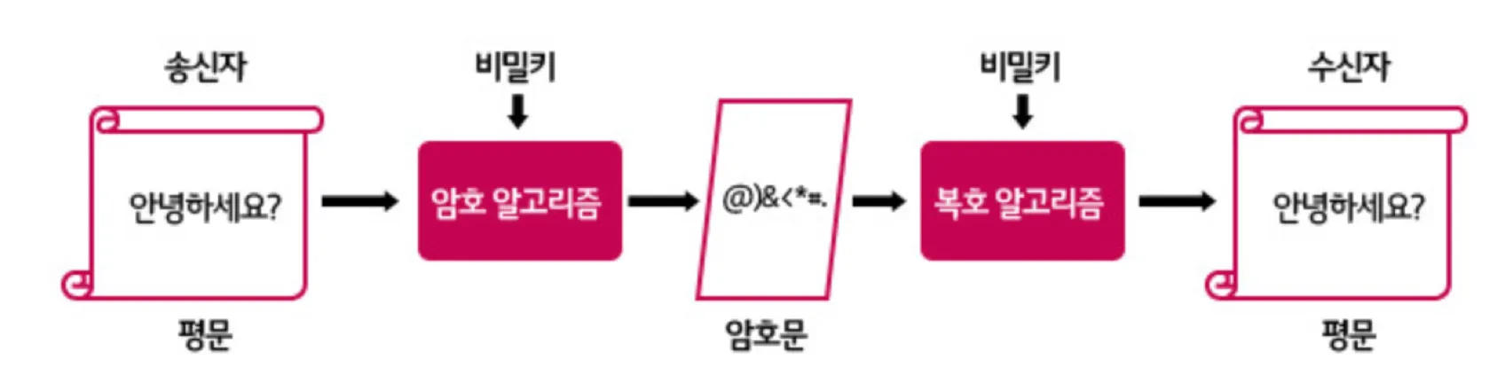 특정한 비밀키를 가지는 사용자만이 내용을 열어볼 수 있도록 하는 방식