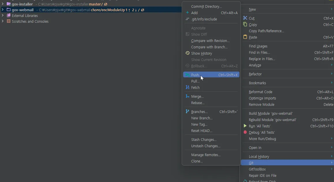 1. GIT > 하나로 합칠 커밋 이력 선택 후 우클릭 > Squash Commits 클릭