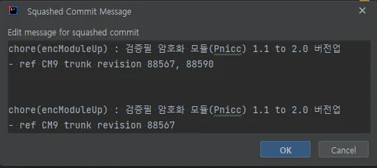 선택된 여러 커밋 메시지를 하나로 병합 후 OK