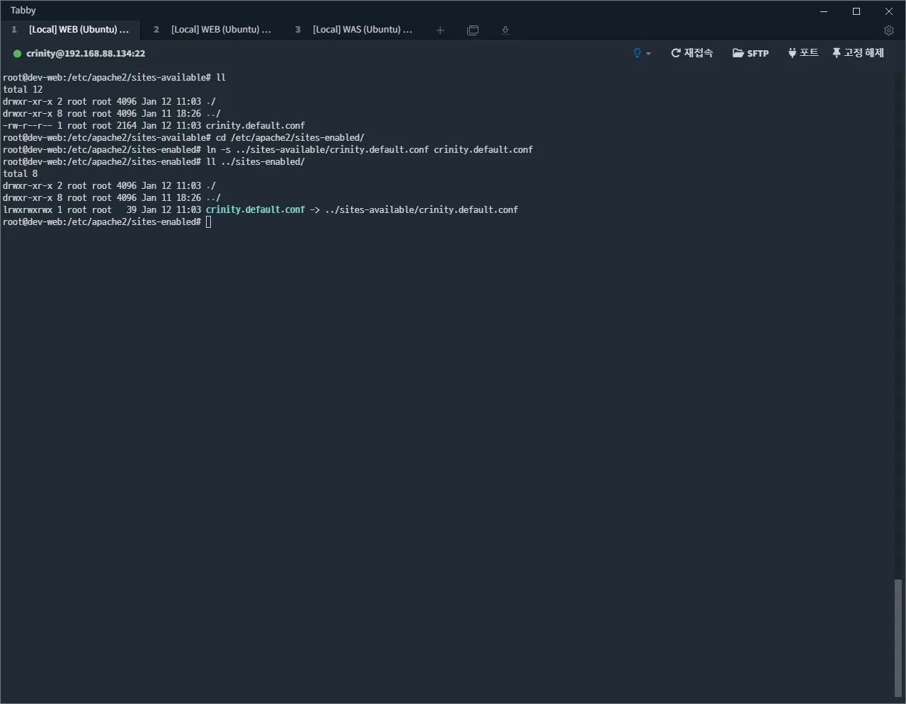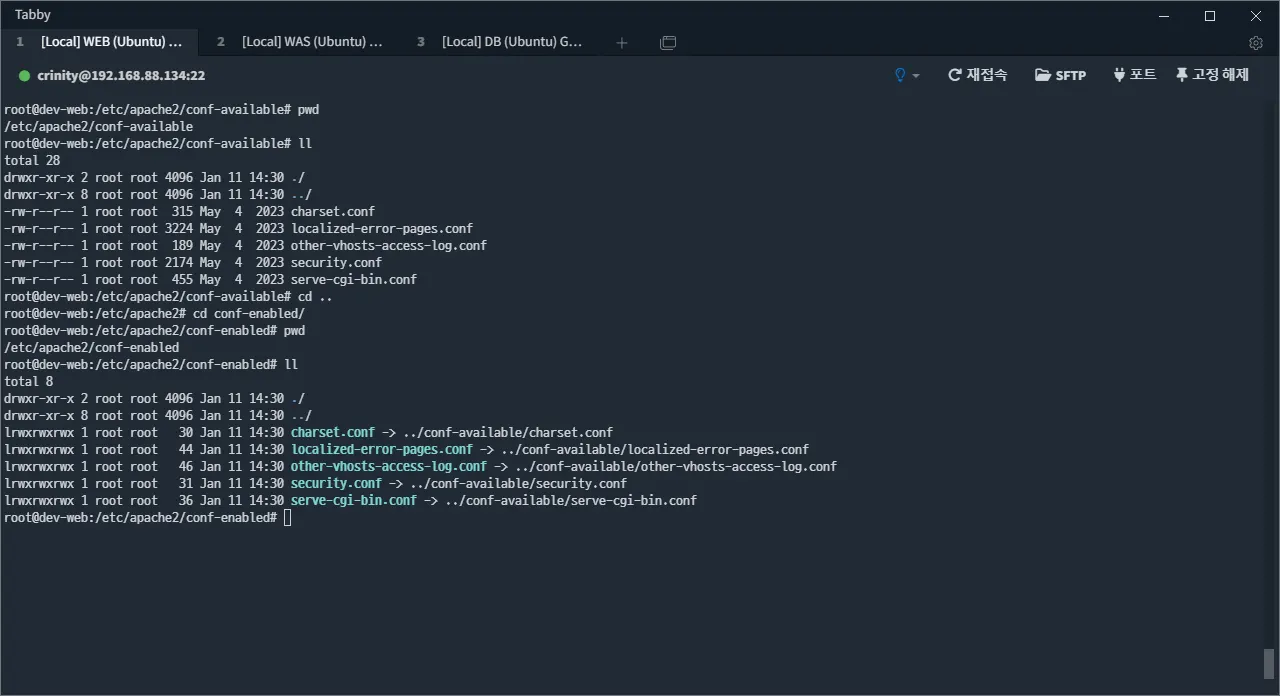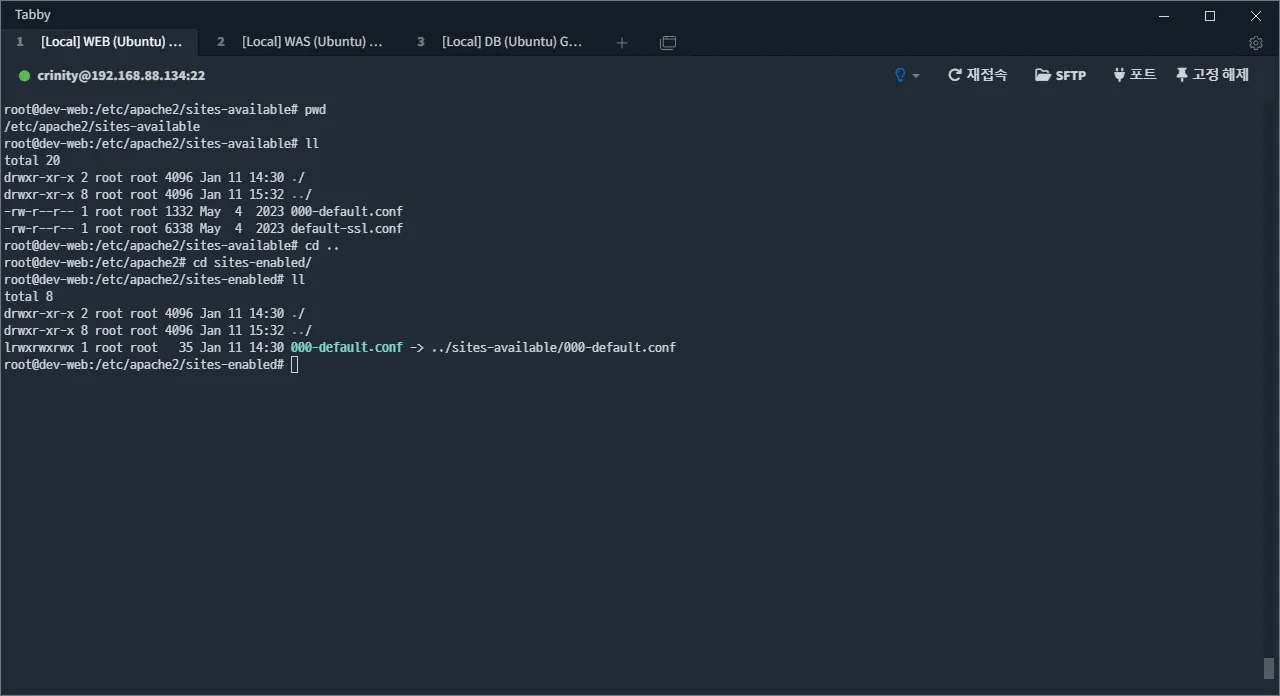 설정 파일을 모두 작성하였으면, /etc/apache2/sites-enabled