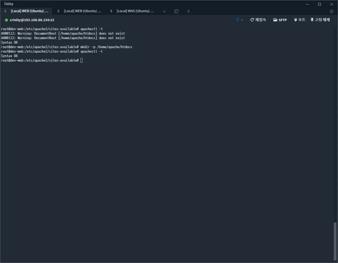 서비스 기동 전, apachectl 을 통하여 설정 파일 검증을 합니다.