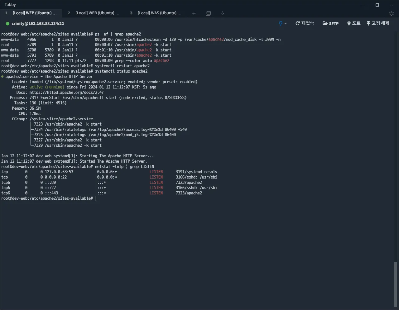 apache2 재기동