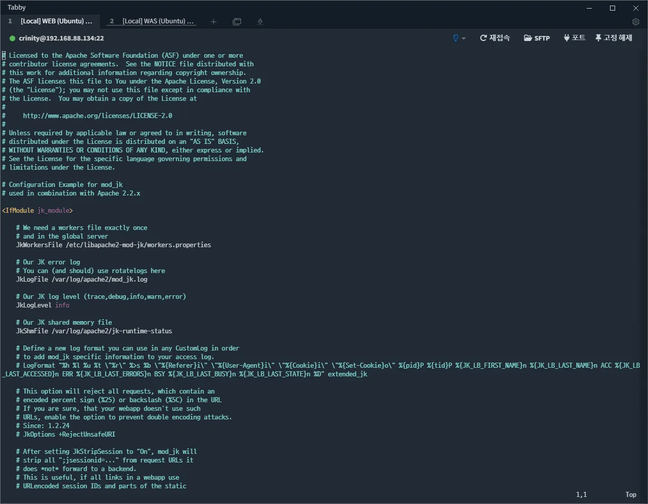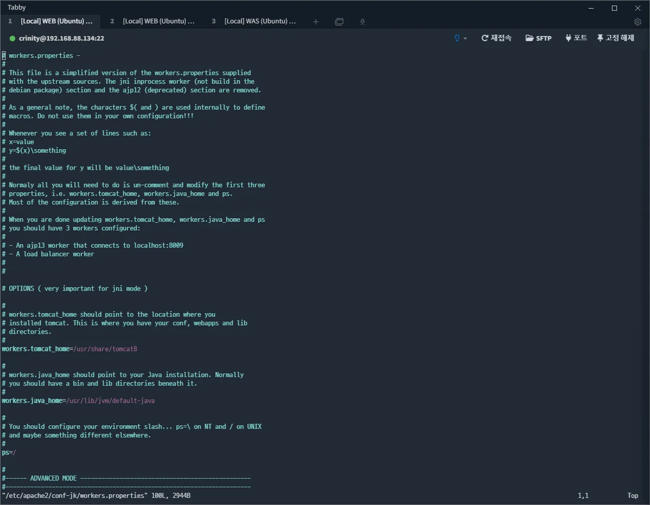 worker.list=was-lb,mag,addon-lb # 활성화할 worker 혹은, worker-lb를 선언합니다.
