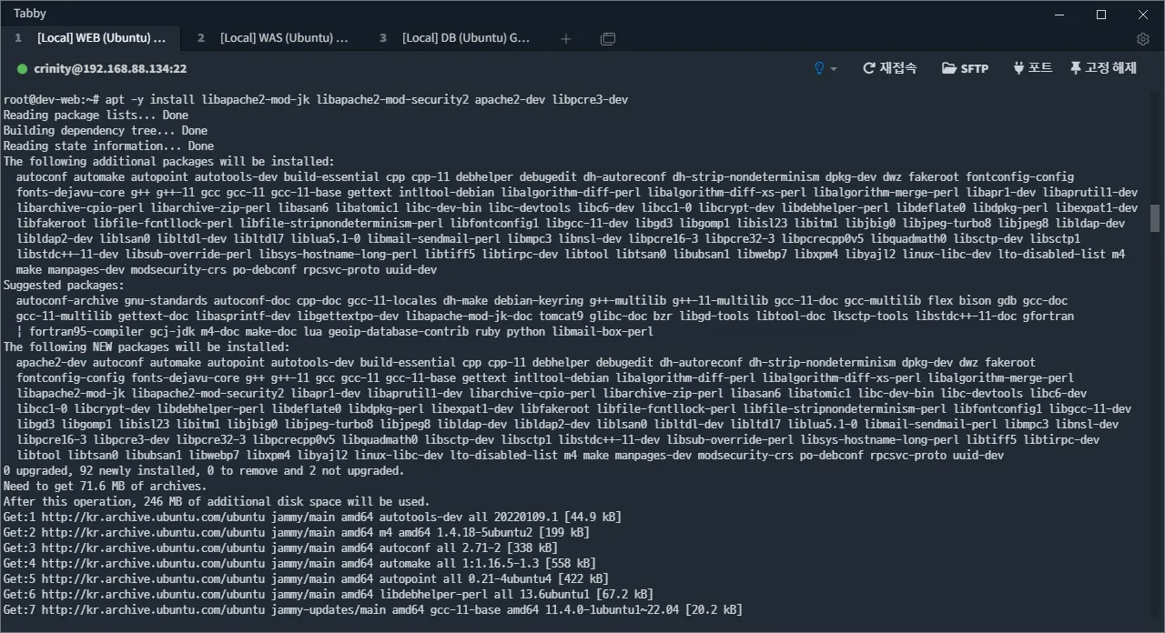 libapache2-mod-jk : Apache와 Tomcat 간의 통신을 도와주는 Apache 모듈