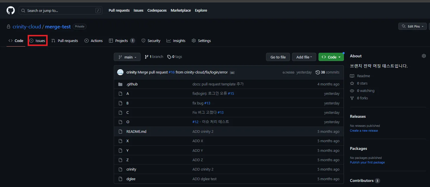 이슈 등록 → 이슈 개선 → 코드 통합이 유기적으로 이루어짐