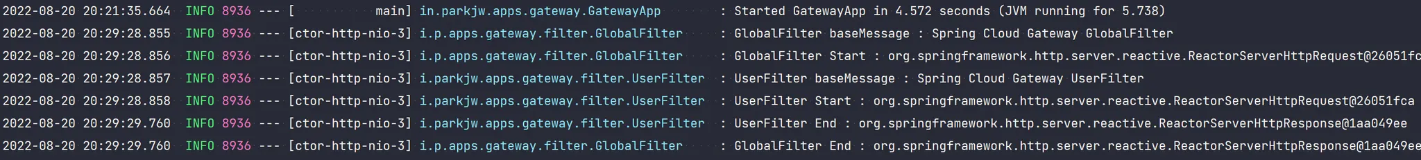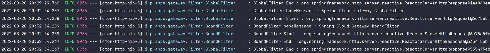 각 API에 설정한 Filter가 수행됨을 확인할 수 있다.