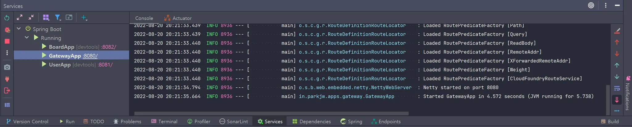 API Gateway의 포트는 8080으로 설정하였다. (여기서 쓰려고 8080 포트를 아꼈다..!)