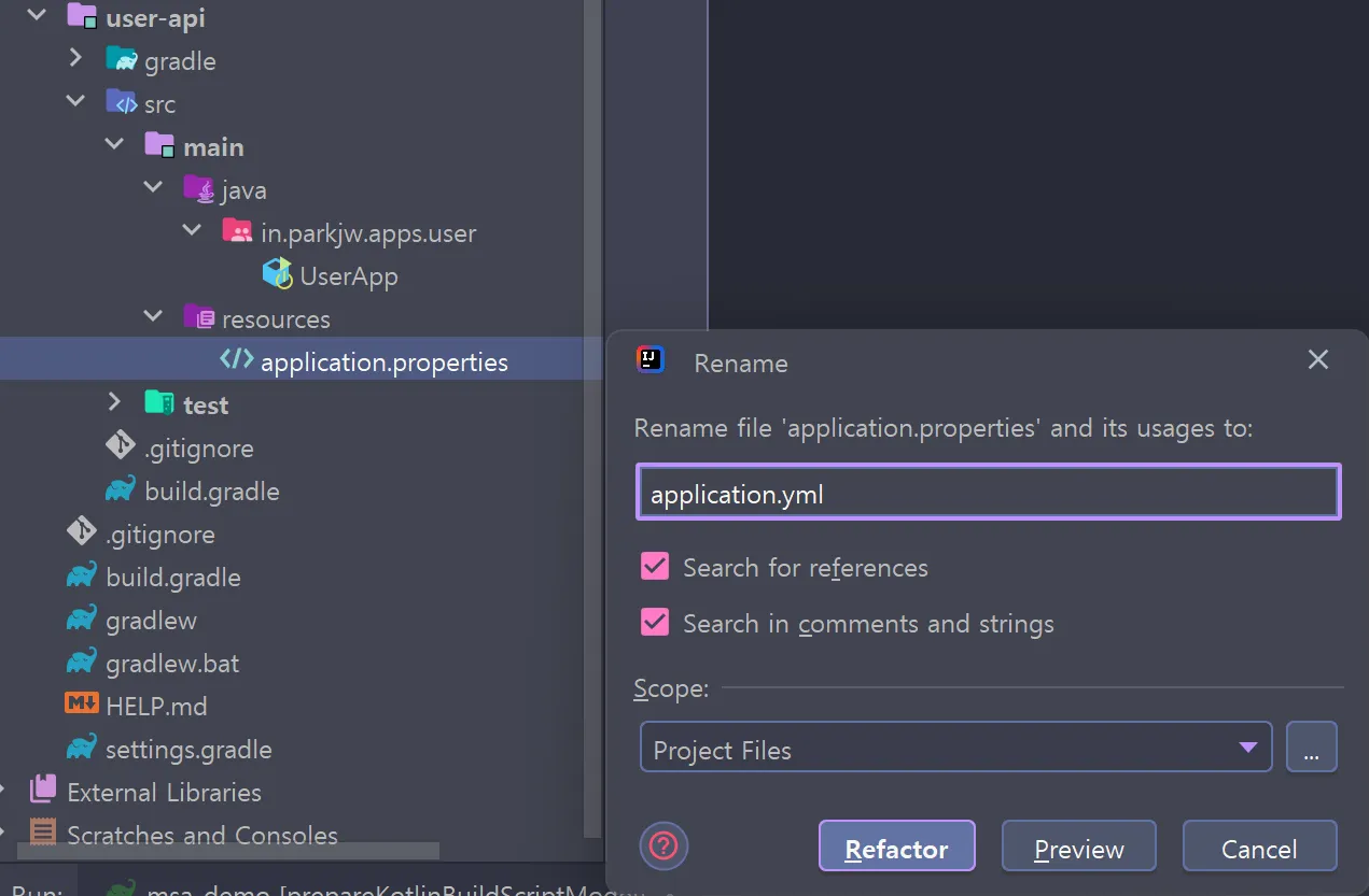 편리한 설정 관리를 위하여 .properties.yml (yaml)로 변경.