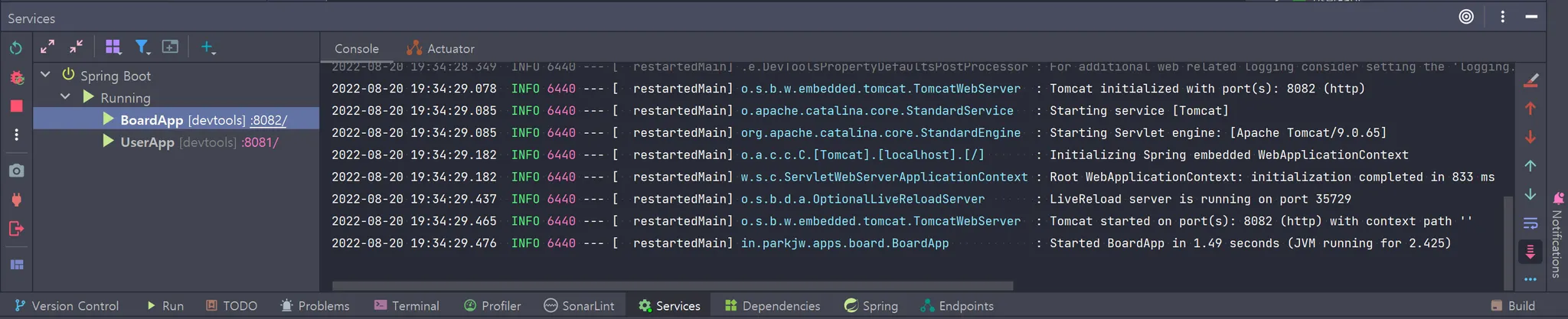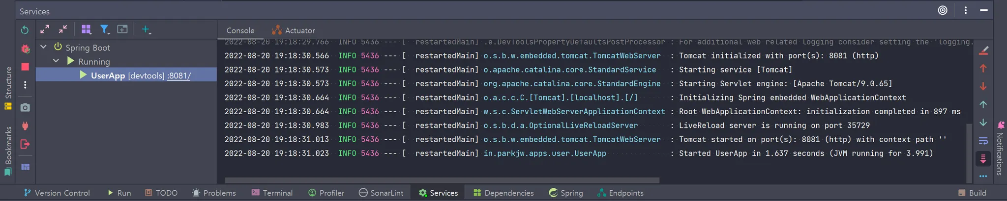IntelliJ에서 제공하는 Tool Windows 중 Services 를 적극 활용하자. 굉장히 편하다!
