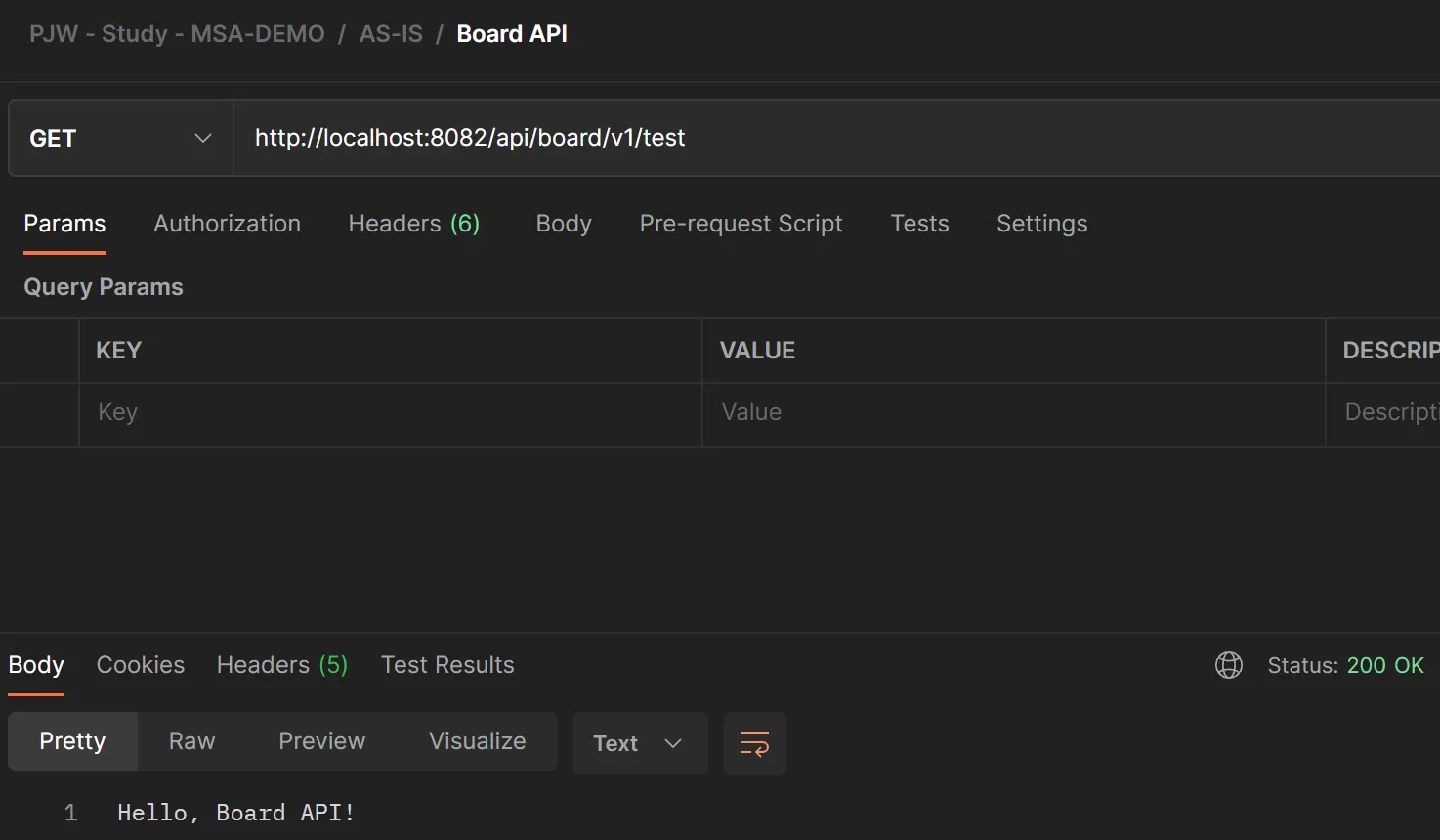 포트 중복을 피하기 위하여 신규 모듈의 경우 8082 포트로 설정하였다.
