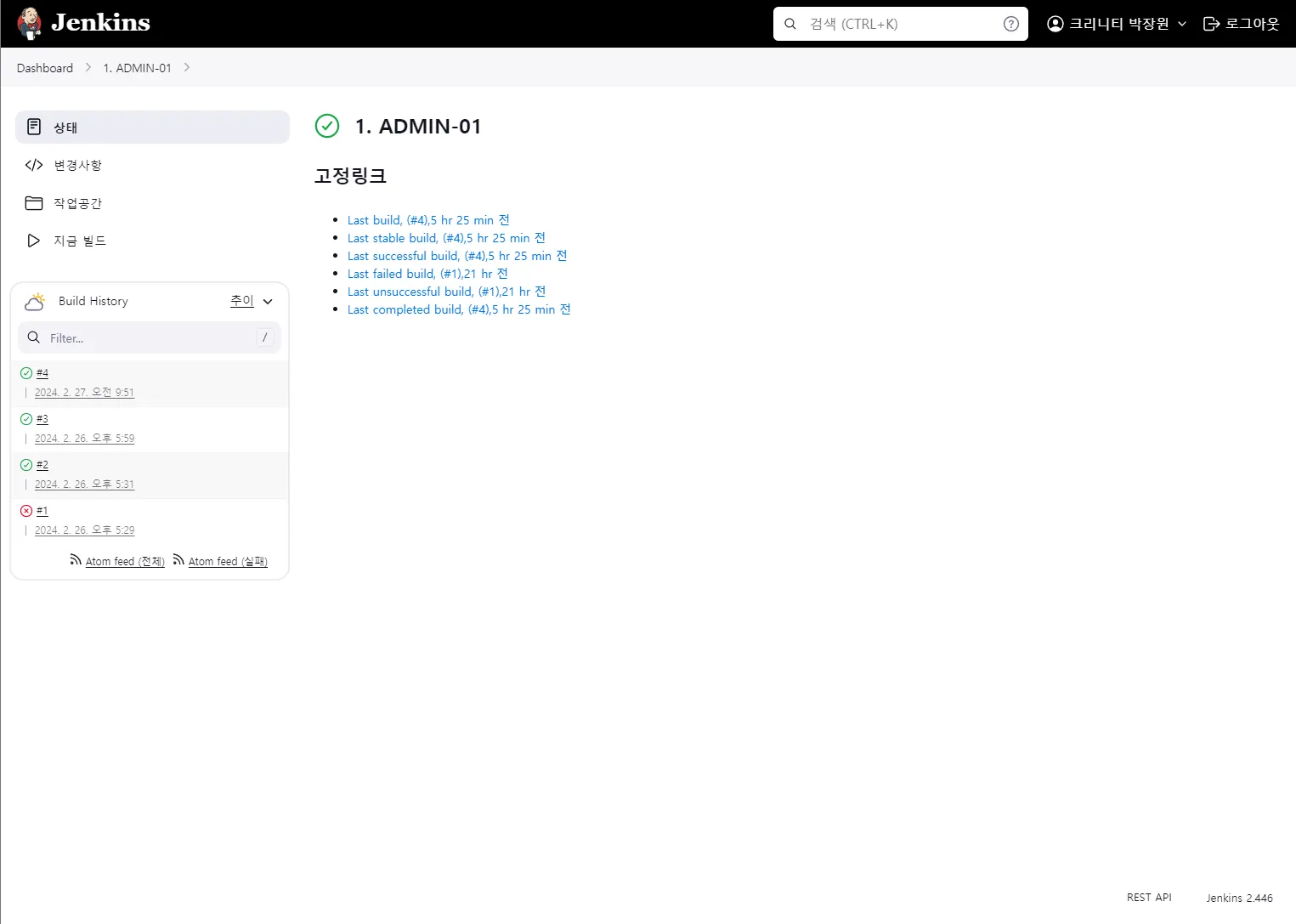 통합 관리자 로그인 성공 및 관리자 권한 존재 확인 (Jenkins 관리 기준)