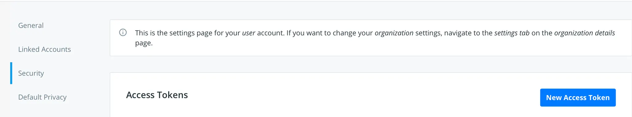 Security > AccessTokens > New Acess Token 클릭 후 사용 용도(메모 개념)을 입력하면 Token이 발급된다.