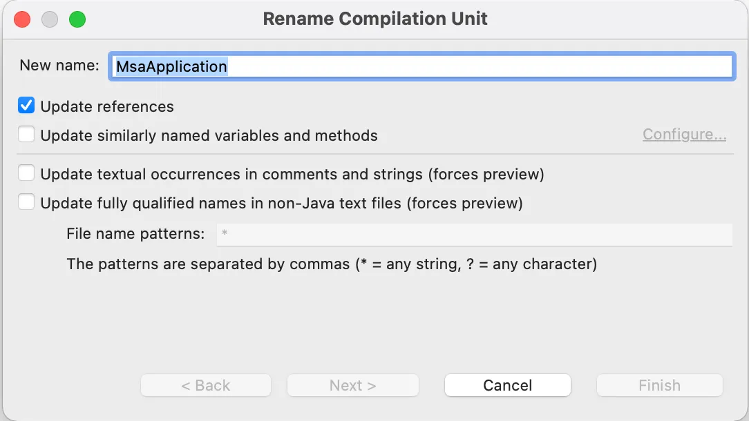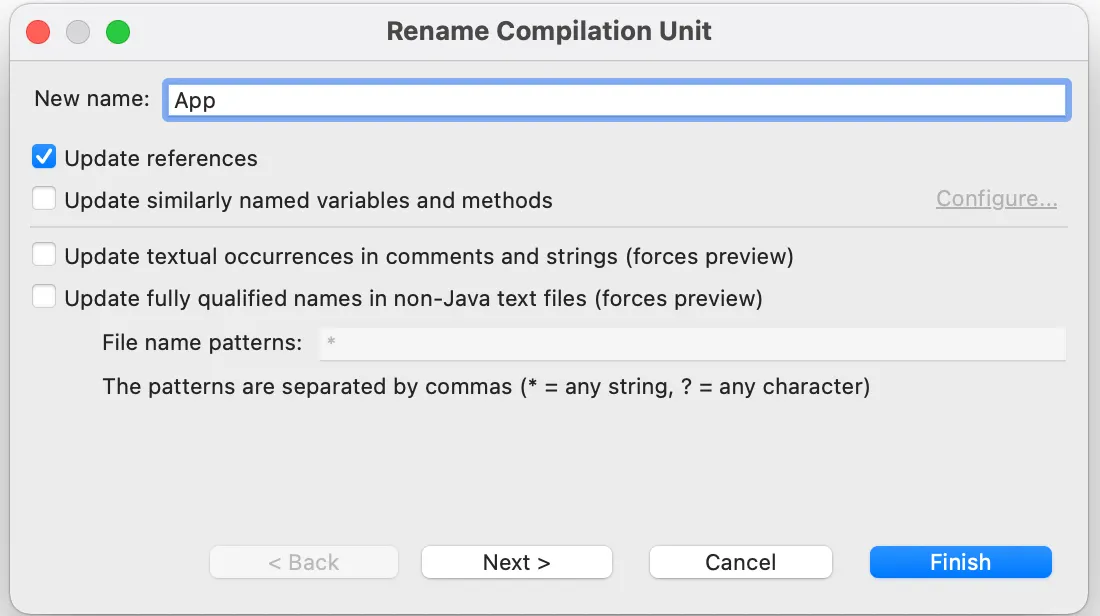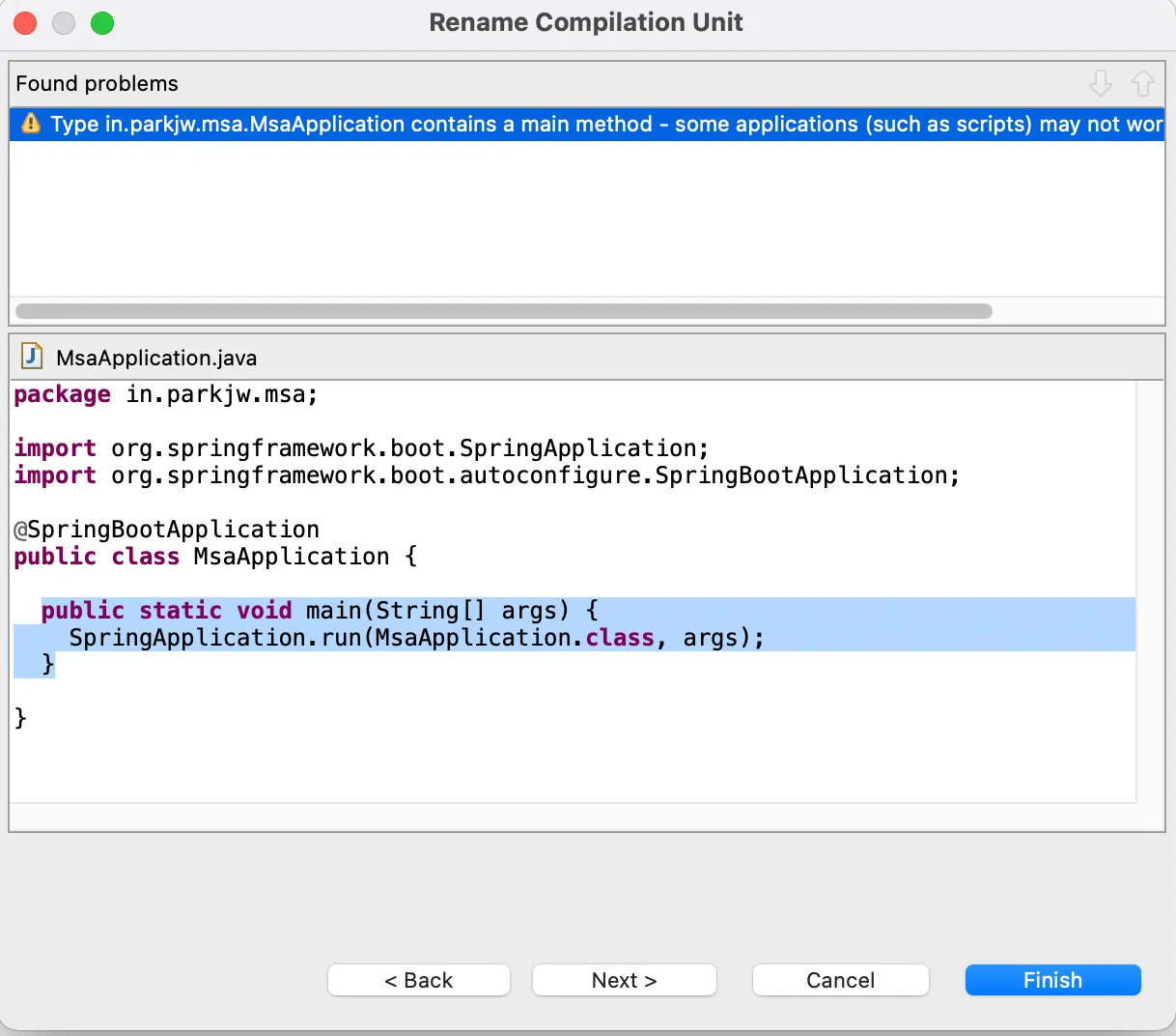 대충...해당 클래스를 참조하는 부분도 같이 바꿀건지 .. 그냥 Finish 눌러준다.