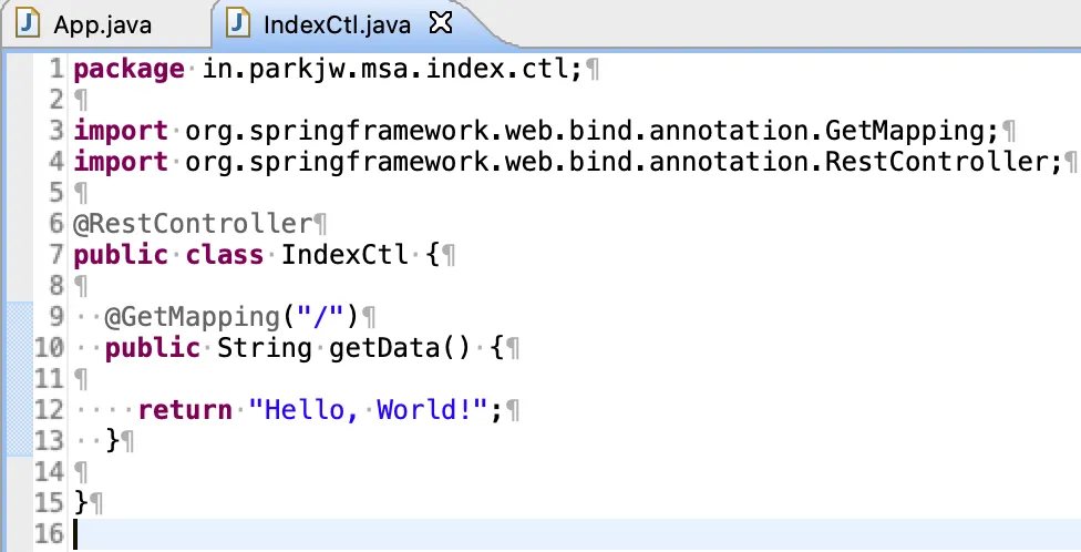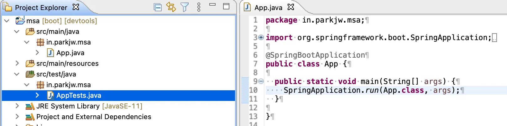 이건 해도 안해도 그만이다. 개인적으로 Boot Application 클래스 이름을 'App'으로 변경하는 것을 좋아한다.