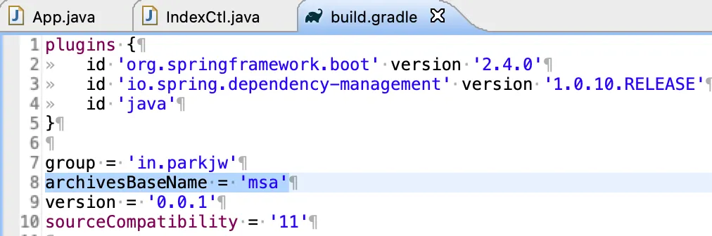 이렇게 설정할 경우, Build된 File의 이름은 'msa-0.0.1.jar' 으로 설정된다.
