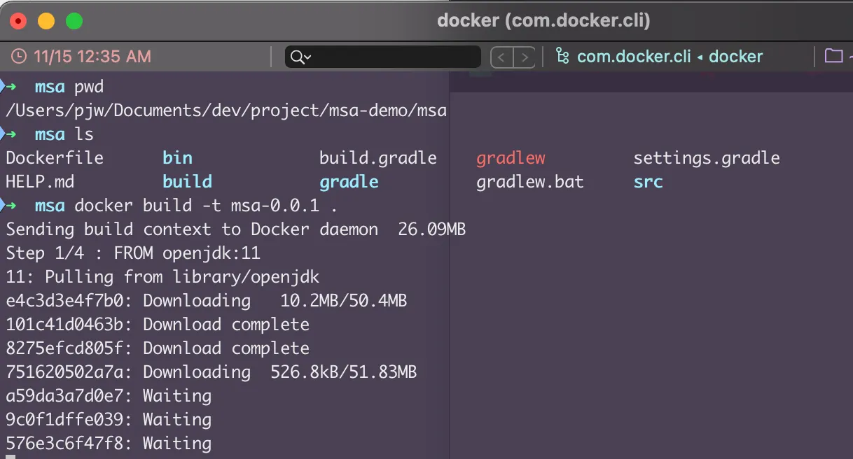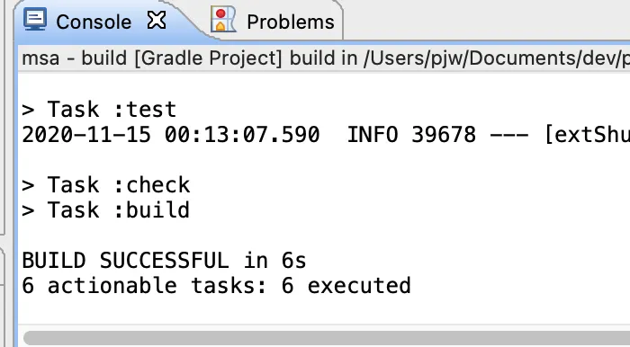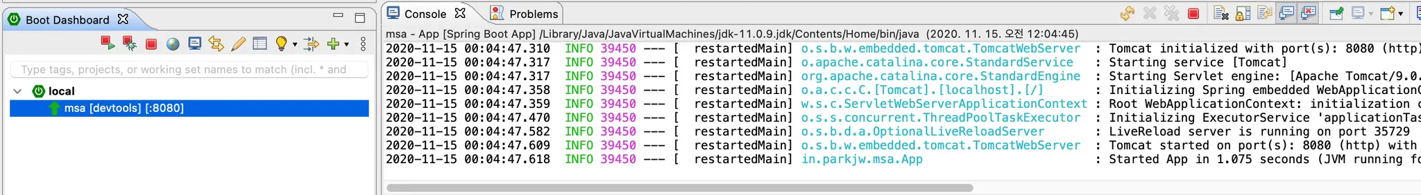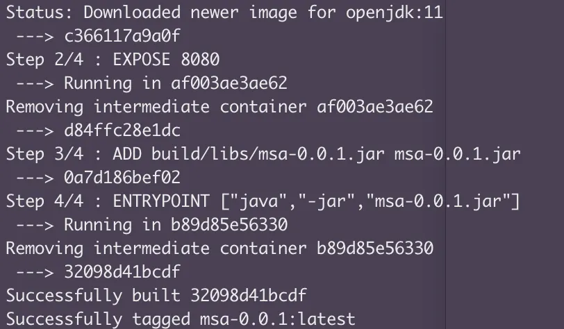 터미널에서 'java -jar ㅡmsa-0.0.1.jar' 명령어를 입력 하면 이 어플리케이션이 구동된다.