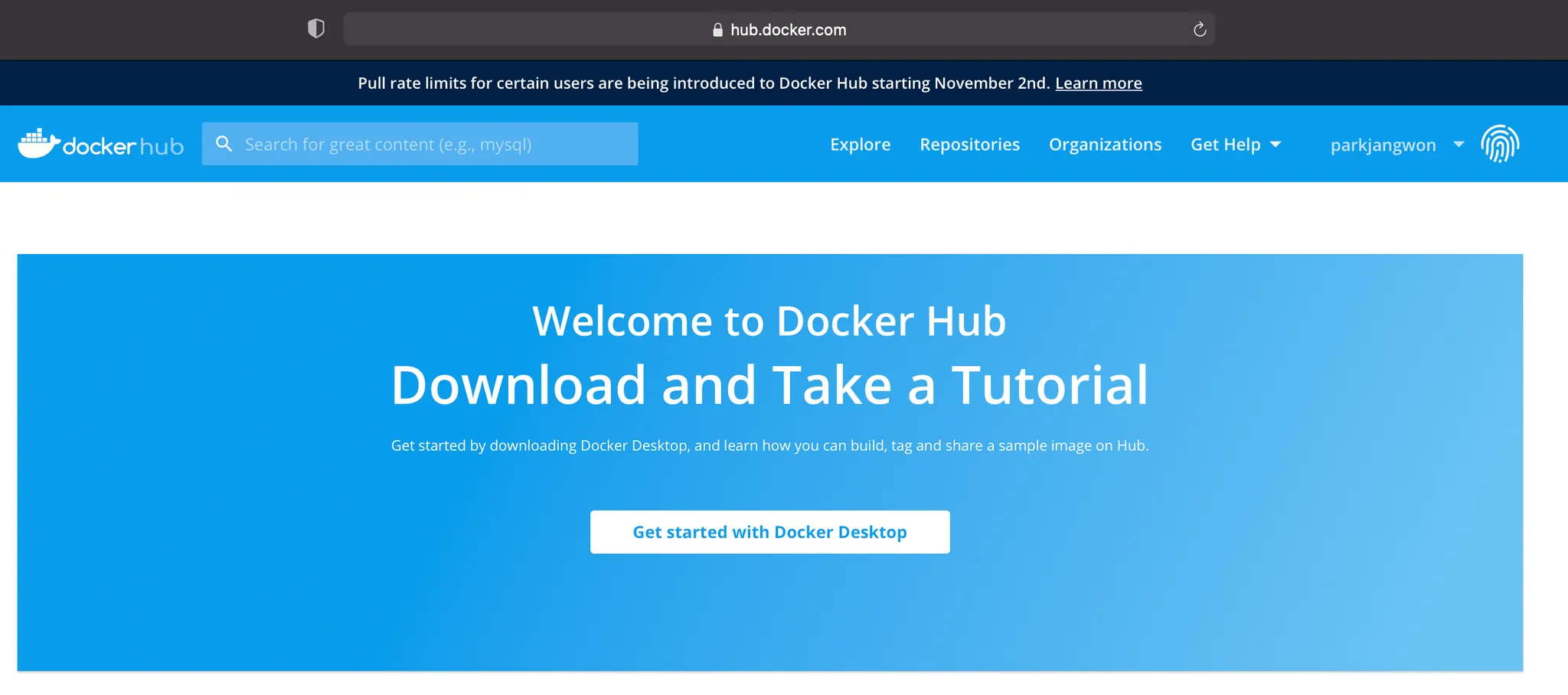 # Docker Hub에 로그인한다. 작성자의 경우 이미 로그인을 하였다.