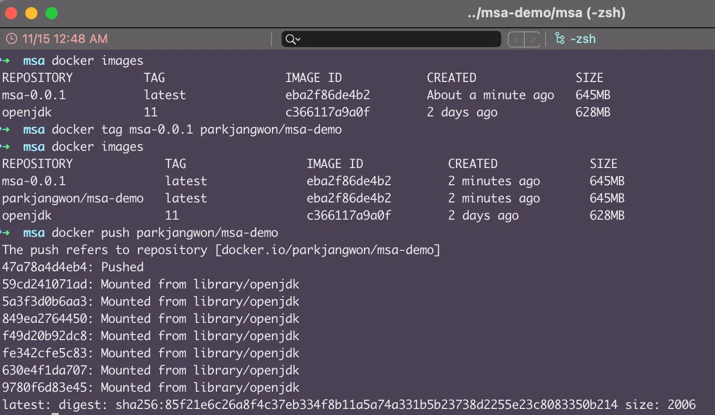 # docker tag msa-0.0.1 parkjangwon/msa-demo