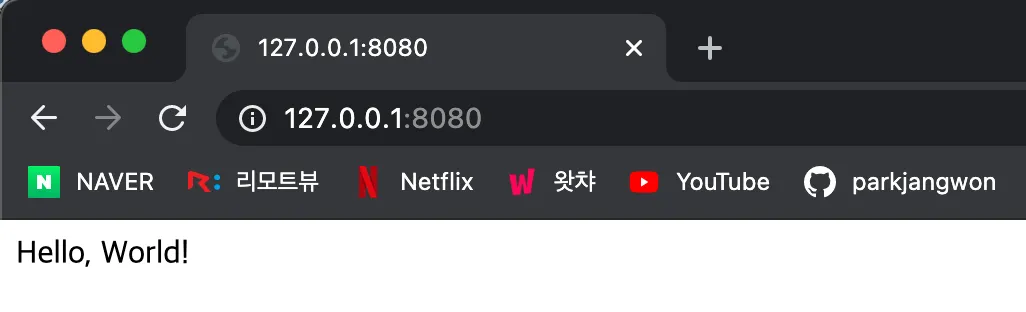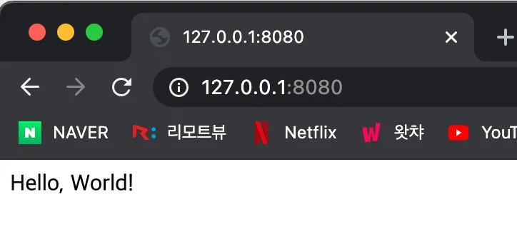 브라우저에 127.0.0.1:8080 접속 시 정상적으로 응답을 한 것을 확인 할 수 있다.