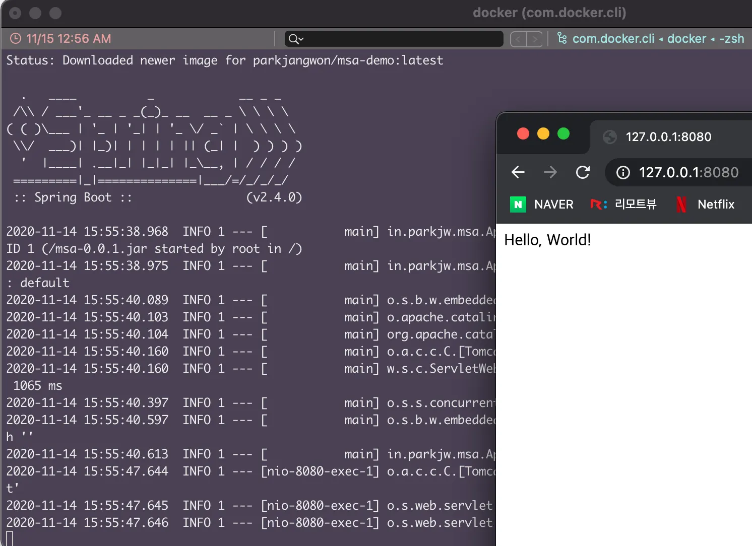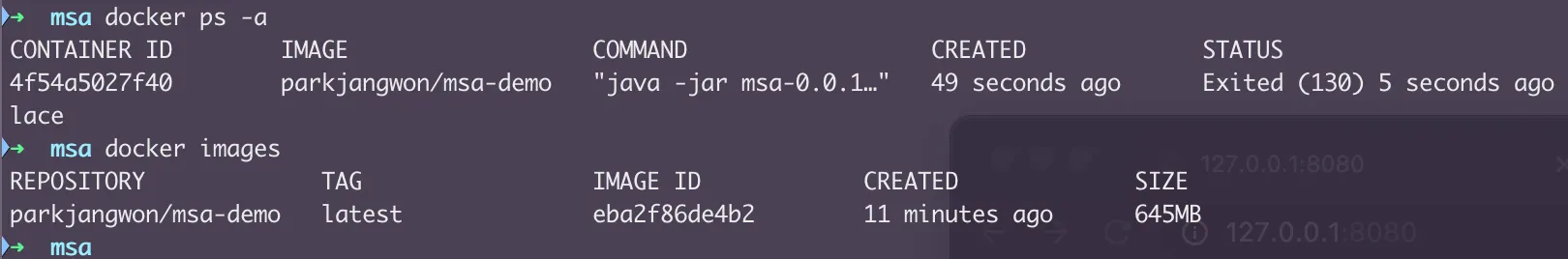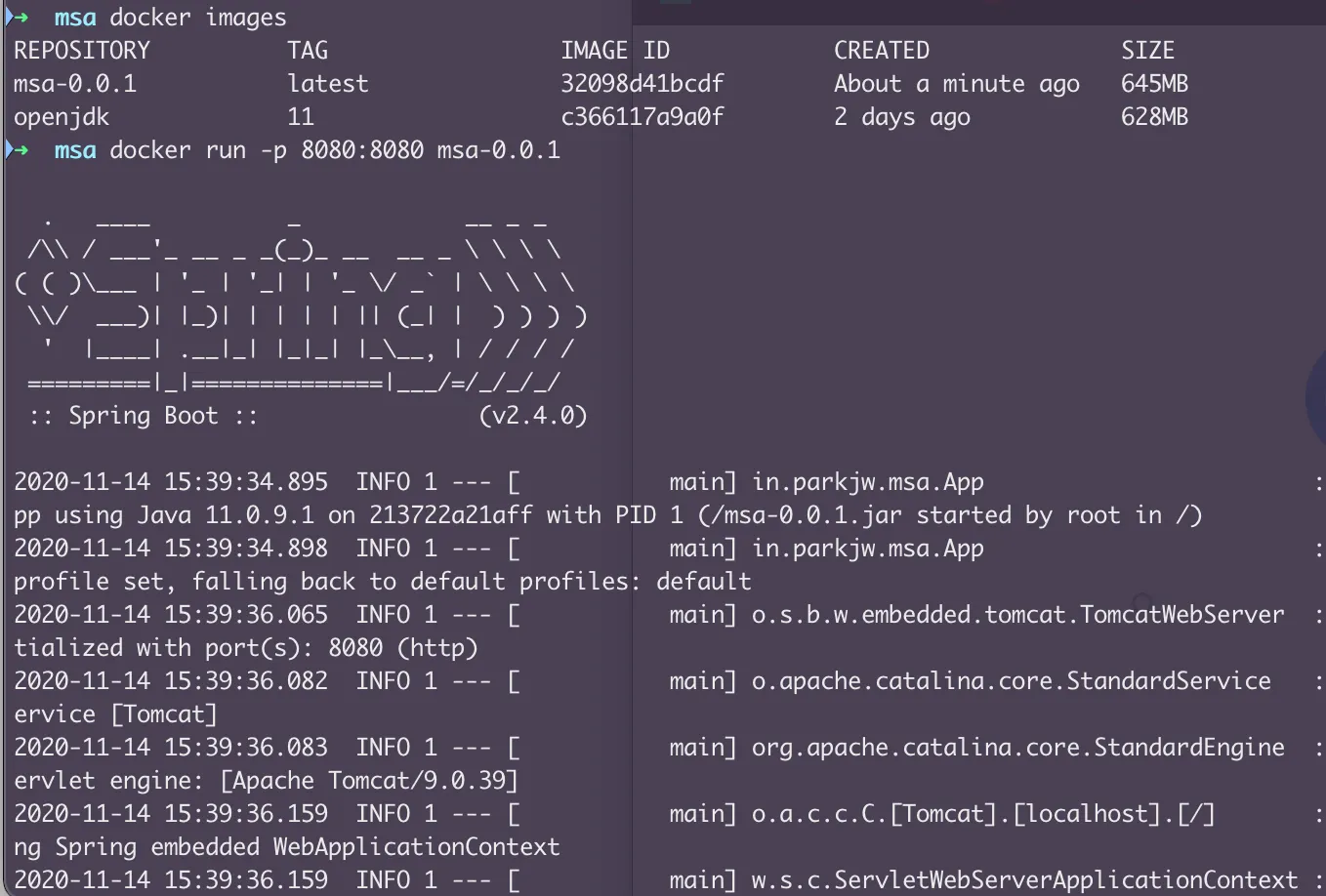 # docker run -p 8080:8080 parkjangwon/msa-demo