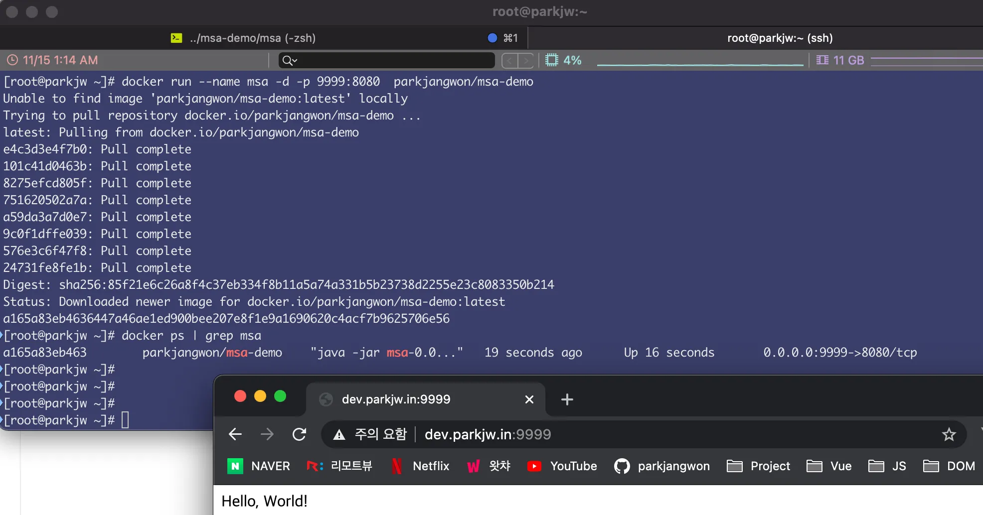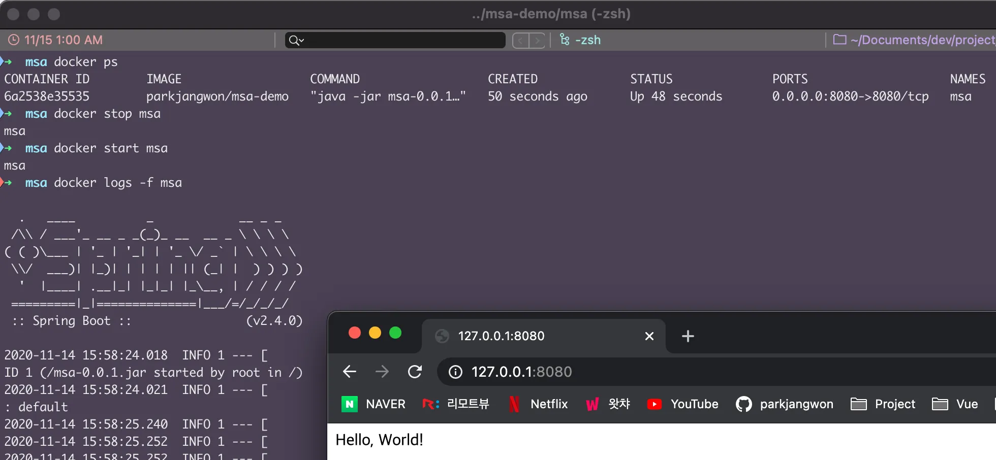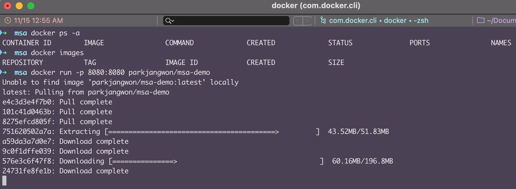 # docker run -p 8080:8080 parkjangwon/msa-demo