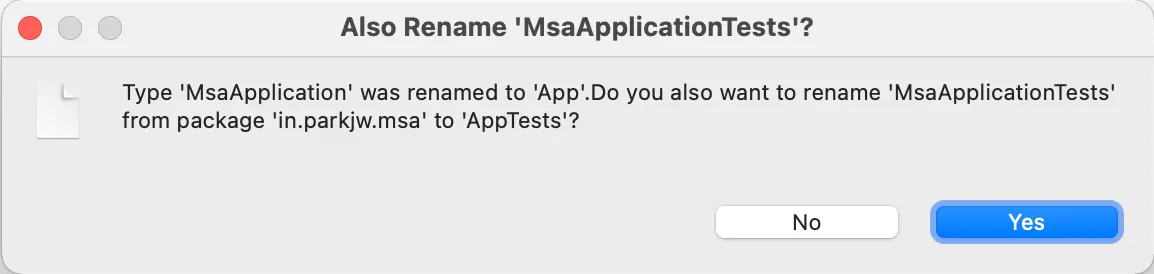 Test Class도 같이 바꿀꺼냐.... Yes를 눌러준다.