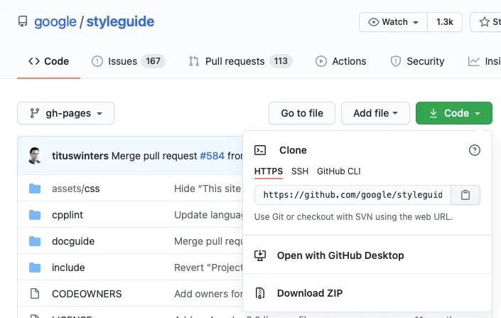 git clone으로 프로젝트를 받거나, Download ZIP을 클릭하여 내려 받는다.