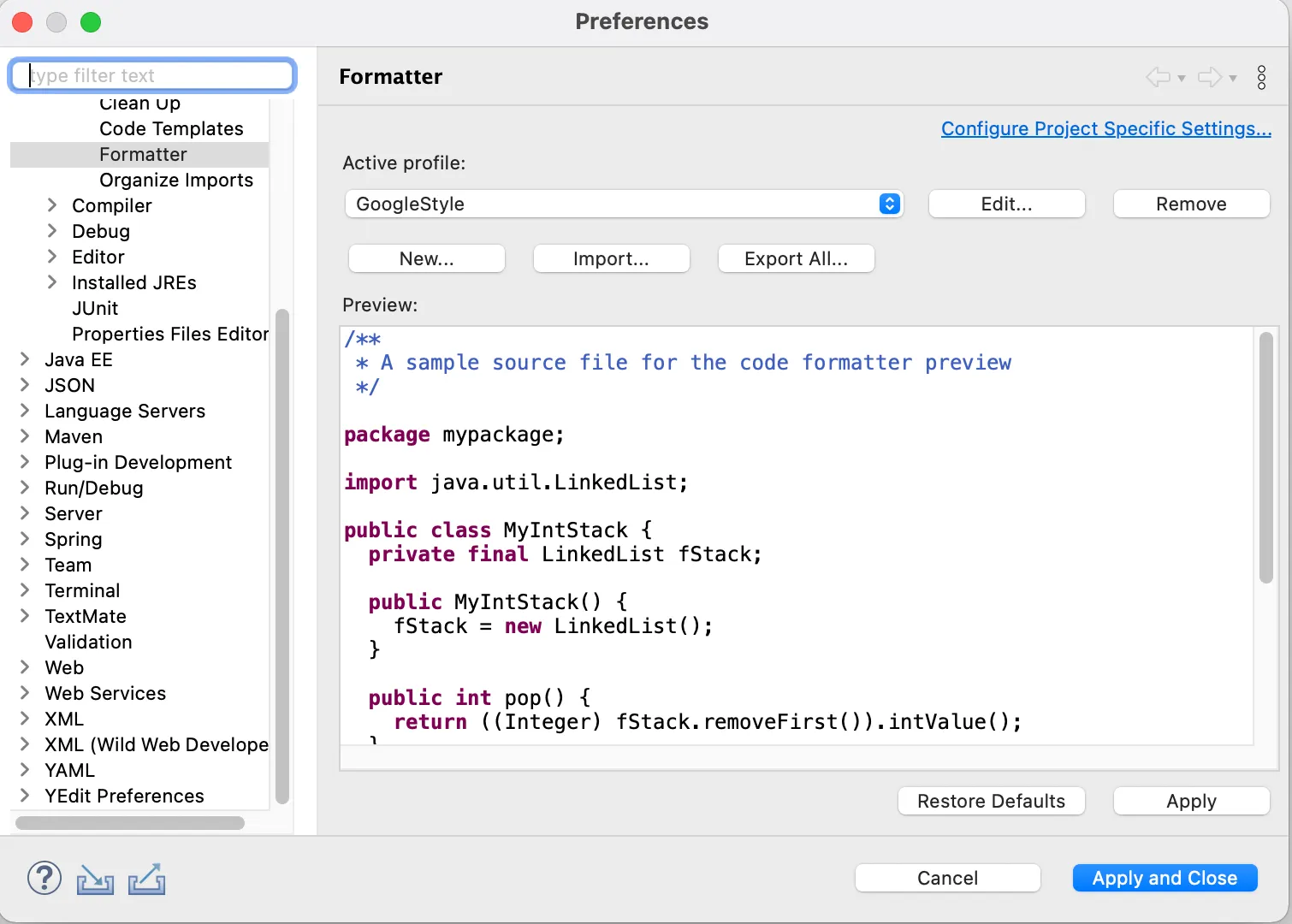 여기서는 Google에서 배포하는 Fomatter를 내려 받아 적용해보겠다.(꼭 Google일 필요는 없다. 취향에 맞는 Stye을 찾아서 적용해도 된다.)