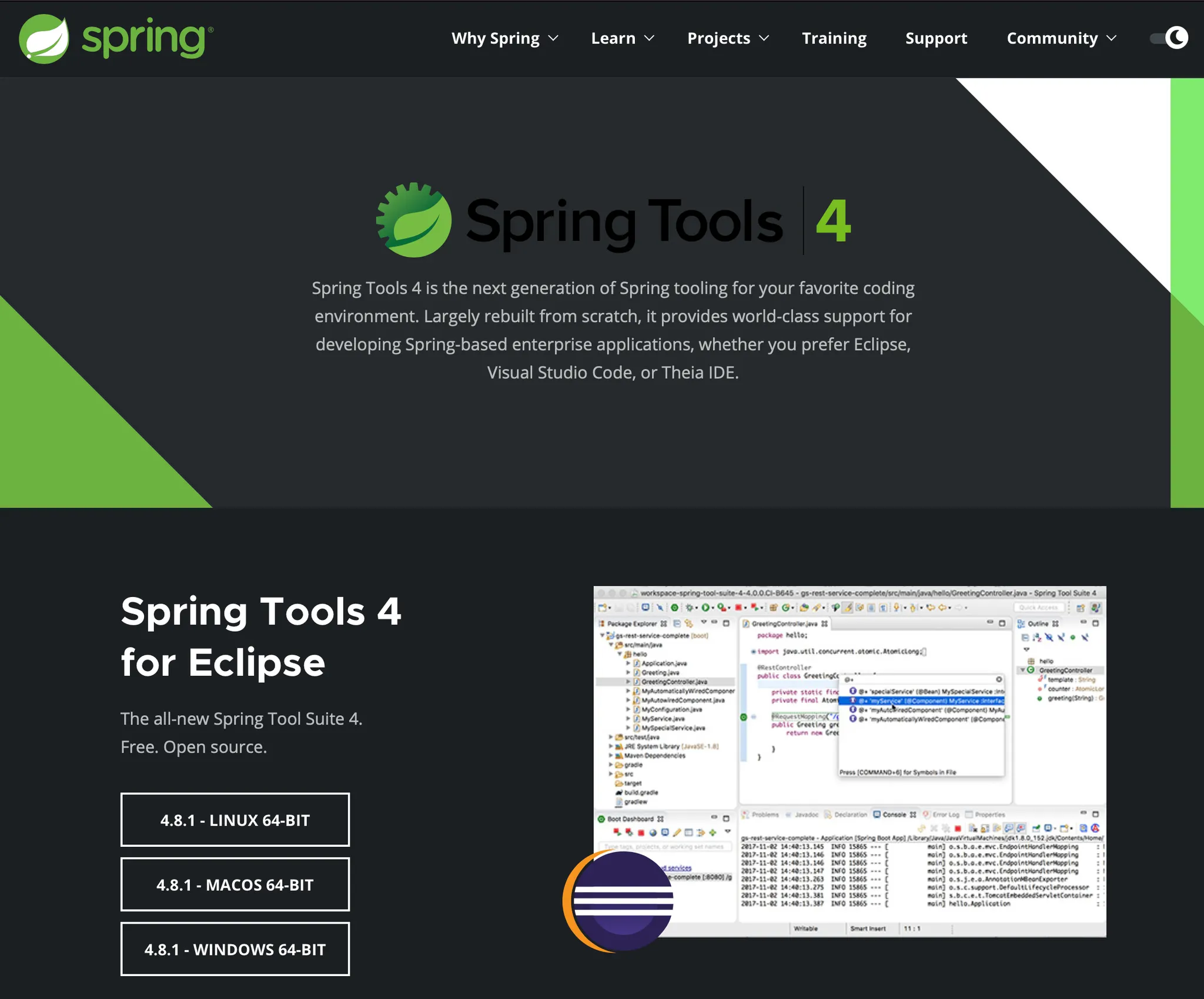 IDE는 어떤 것을 사용해도 상관없다. 작성자는 무료로 사용할 수 있는 STS를 선택하였다.