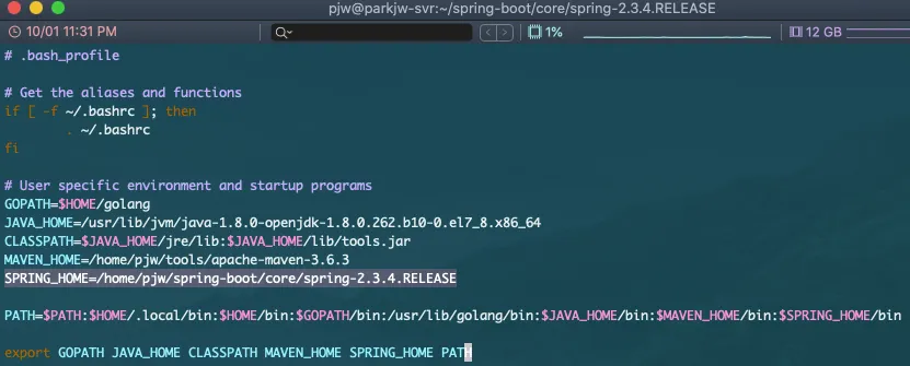 SPRING_HOME=/home/사용자이름/spring-boot/core/spring-2.3.4.RELEASE
