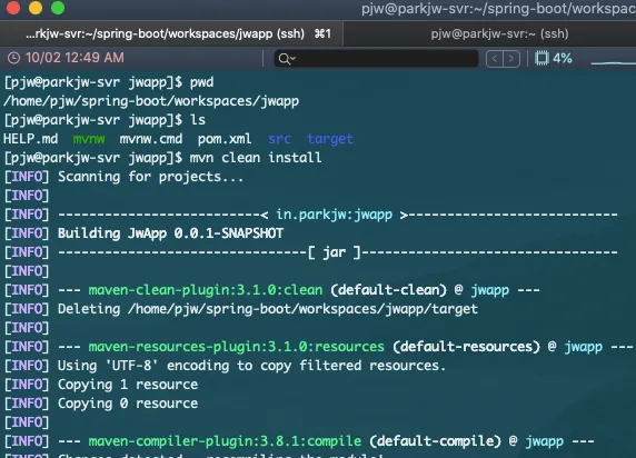 (보통 pom.xml이 위치한 디렉토리)로 이동 후, mvn clean install 입력