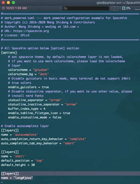 vi ~/.SpaceVim.d/init.toml