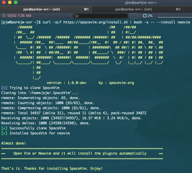 vim 에디터는 단순 문서를 볼 때도 사용하기 때문에, Neovim 에디터를 설치한 후 Neovim 에디터에 Spacevim을 설치하도록 하겠다.
