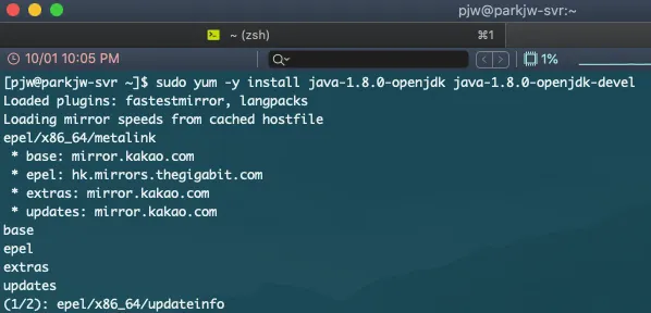 yum (패키지 매니저)을 통하여 openJDK 8을 설치한다.
