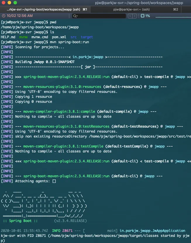 mvn spring-boot:run 명령어로 Application을 구동 시키자.