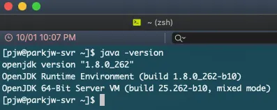 java -version 명령어로 설치가 되었는지 확인한다.