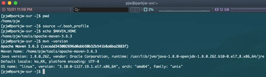 MAVEN_HOME=/home/사용자이름/tools/apache-maven-3.6.3