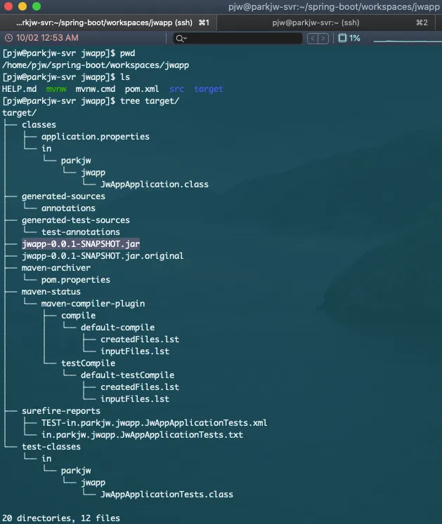 target 디렉토리 아래에 빌드된 파일들이 생겼는지 확인 해보자.