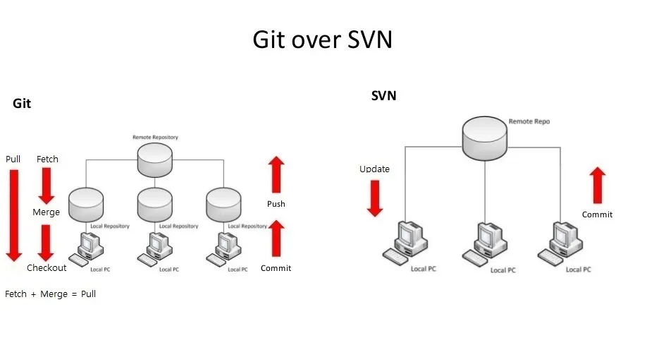 단순한 구조인 CVS, SVN에 비하여 러닝커브가 있긴함. 이 부분은 금방 적응이 가능함