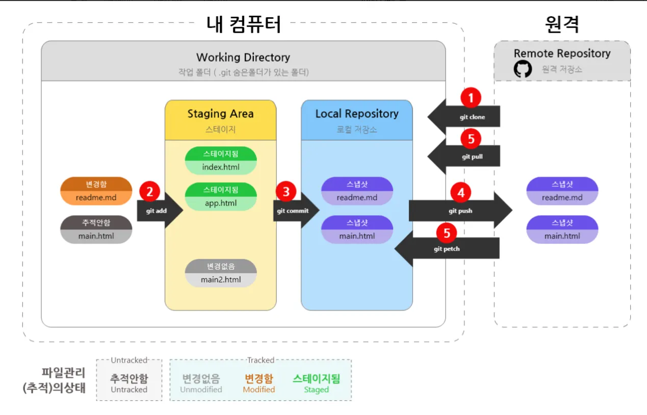가장 큰 특징으로는 로컬 리파지토리와, 원격 리파지토리가 구분되어 있는
